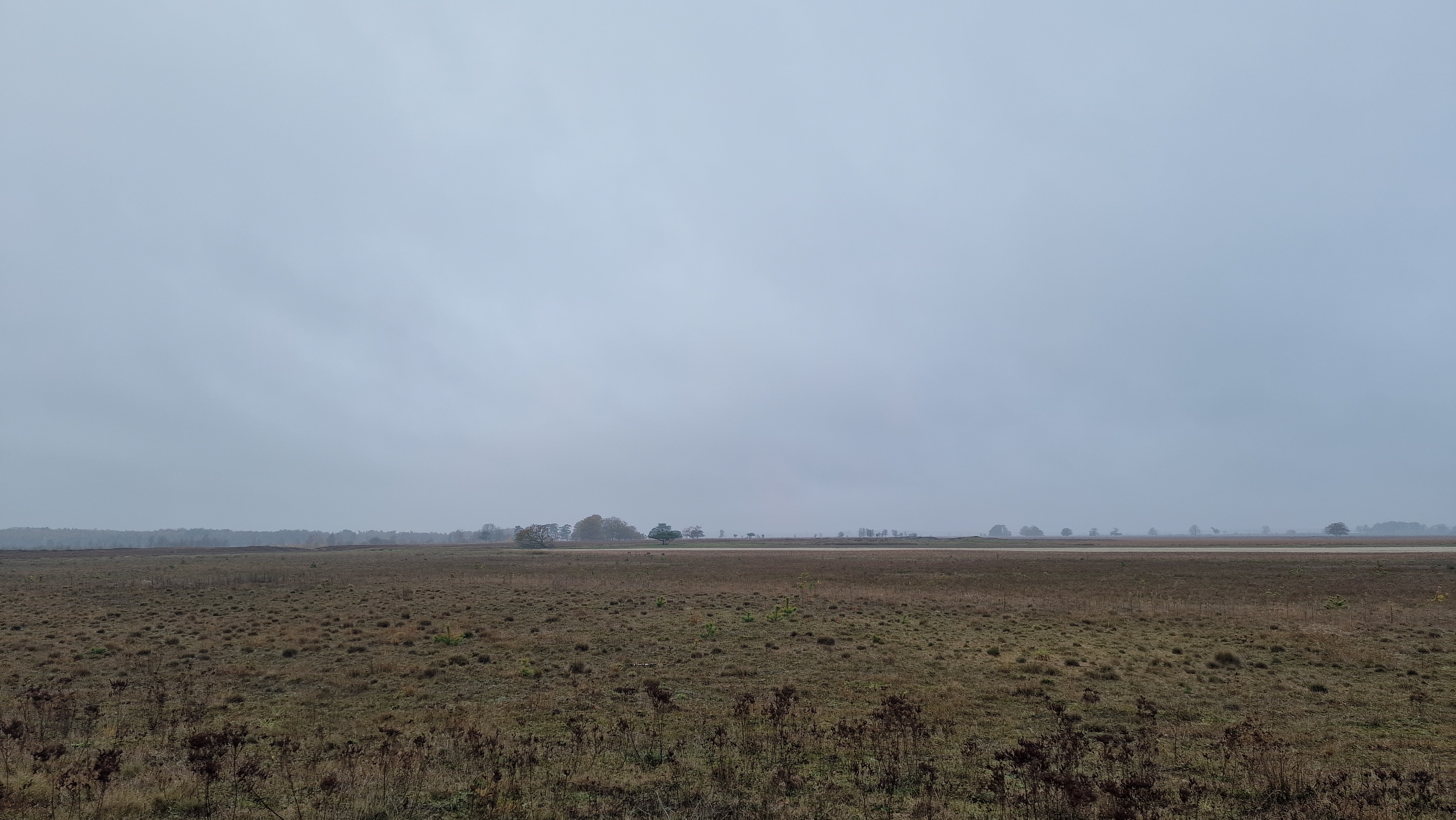 There’s something magical about walking through Dwingelderveld National Park in autumn. The day began with a soft, silvery fog hanging low over the heathland — the kind that mutes all sound and makes every footstep feel like a secret. I started early, just as the first light crept through the mist, and for the first few kilometers, it felt like walking through a dream.